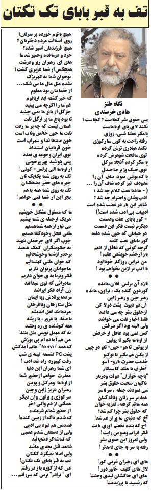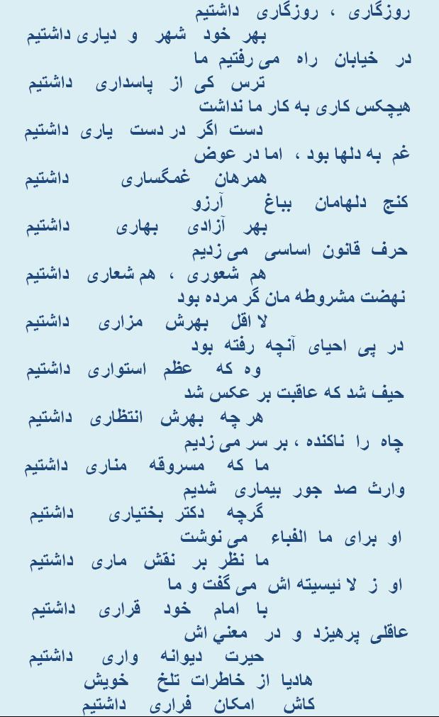 رابطه با سروده سيمين بهبهانی« دوباره می سازمت وطن» : ما نمی ذاريم که ساخته